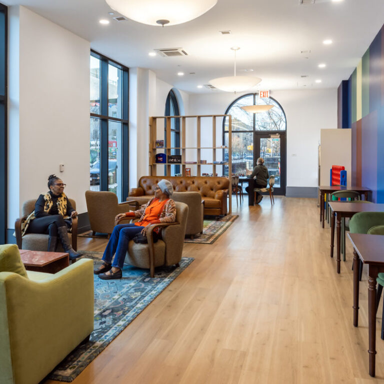 Indoor and outdoor spaces are designed to create a sense of community, with indoor fitness center, outdoor fitness area, laundry room, private outdoor recreation area, video intercom, USB outlets, smart WiFi thermostats, solar panels, raised-bed gardens, community gardens, and rooftop sitting area. Community Facility Space will provide supportive social services focusing on health and wellness programs that promote independent living and promote healthy aging in place.
